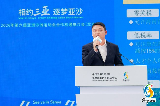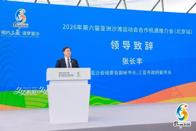 三亚市政府副市长、亚沙会执委会副主任兼秘书长张长丰在致辞中表示,三亚正以“办好一次会、提升一座城”为统领,全面推进场馆建设、服务保障、城市形象与文化宣传等筹备工作,致力于打造一场彰显亚洲风采、富有中国特色、体现海南韵味、展现三亚魅力的体育文化盛会。他指出,北京作为“双奥之城”,拥有深厚的体育积淀、成熟的赛事经验与广泛的媒体资源,希望借助首都的辐射力和影响力,与优秀企业及主流媒体携手,共同提升亚沙会品牌声量,充分释放赛事的商业价值与社会效益。