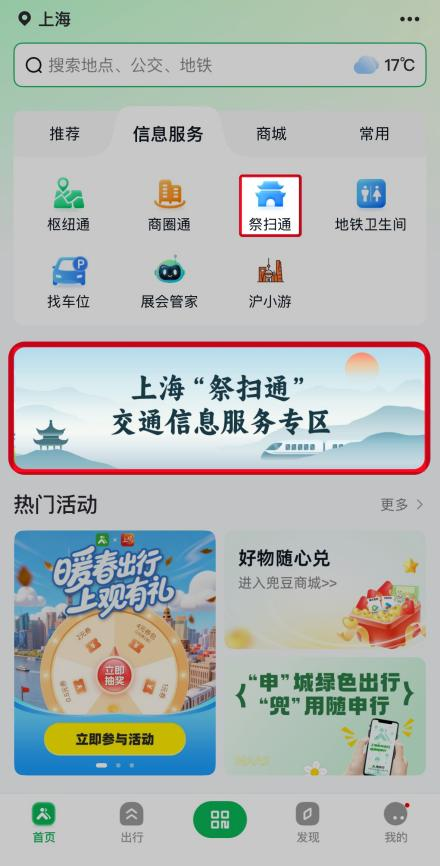 市民可通过“随申行”App或微信小动作首页插足专区,也可通过“随申办市民云”搜索“祭扫通”找到专区进口。