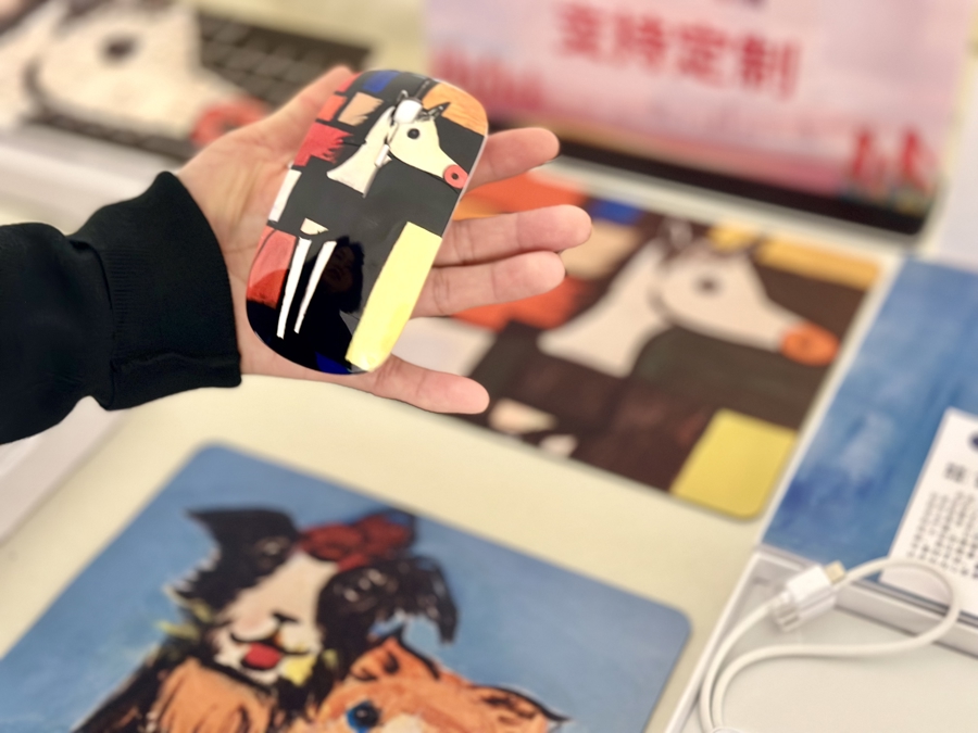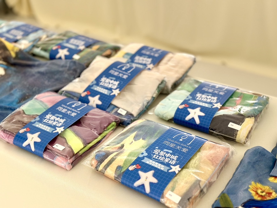 而在“文创展示区”,孤独症儿童的画作被印在了丝巾、跑鞋、鼠标、键盘、伞、茶杯、充电宝等多样活命用品上,现场还可接纳爱心东谈主士或企业定制文创礼品,展示了“展品变商品”的一条链路。据先容,前期已有华为等企业定制了印有孤独症儿童画作的文创礼品,所得款项和现场爱心售卖所得都将反哺给孤独症家庭,匡助他们消弱职责。