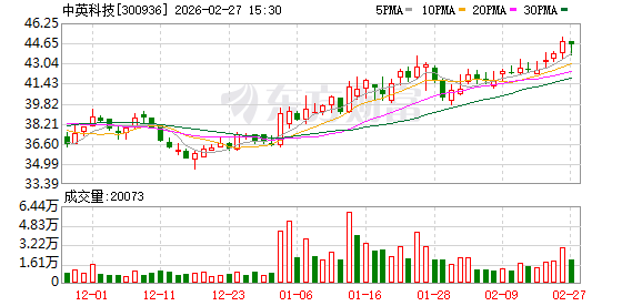 适度2月27日收盘兴旺国际投资,中英科技报44.50元/股,下降0.71%,总市值为33.46亿元。
