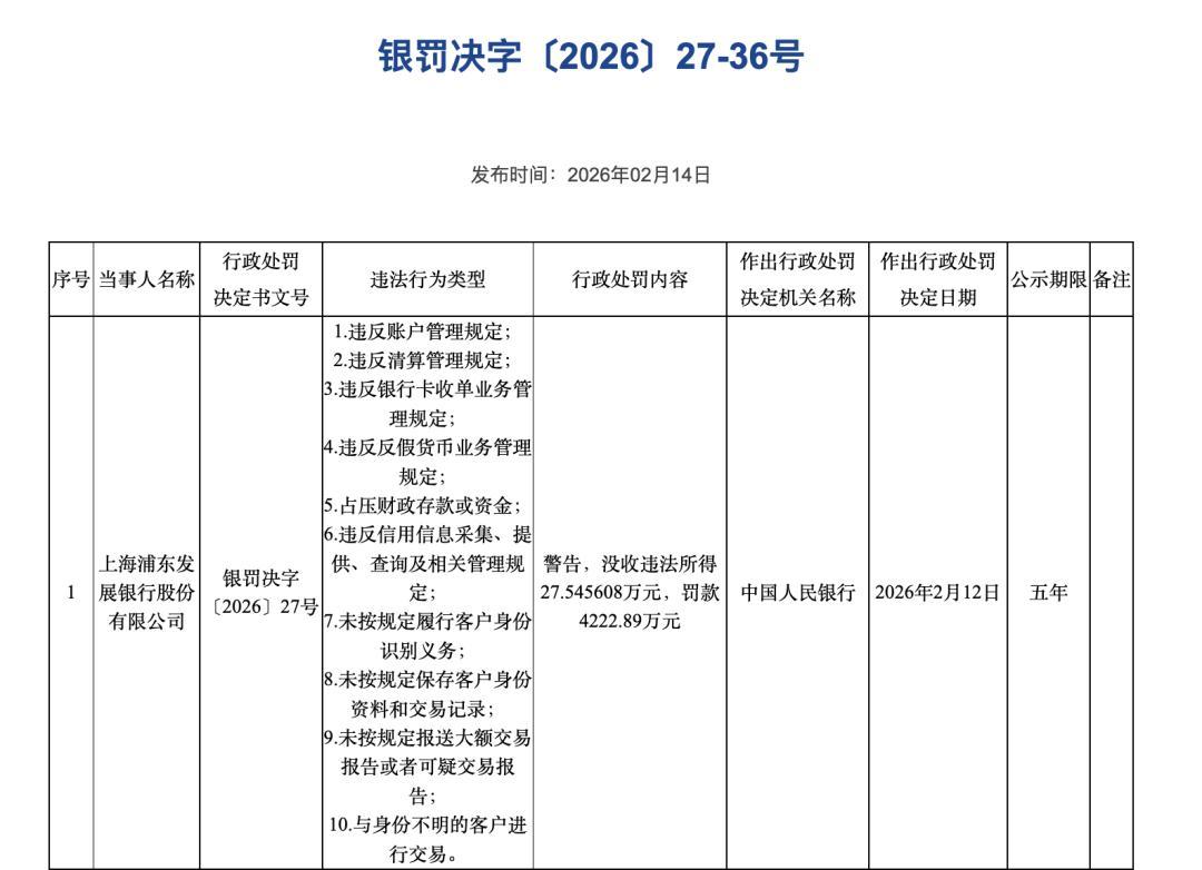 诚多网配资浦发银行被警告并充公不法所得27.545608万元,罚金4222.89万元。