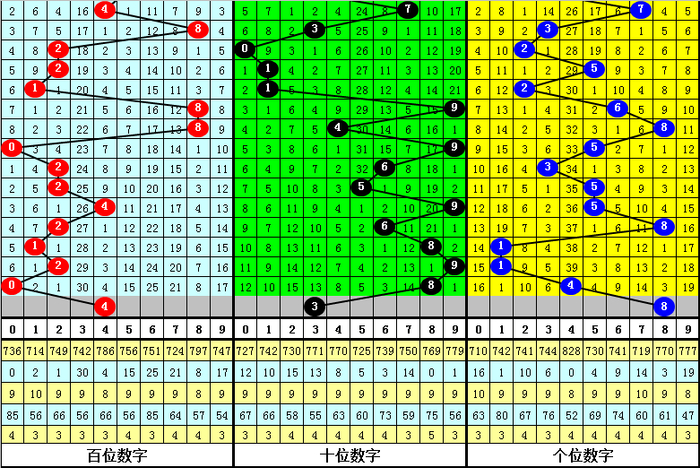百位:当前遗漏最大的号码为3,遗漏30期,历史上该号最大遗漏为56期,本期百位关注该号码解冻码3解冻。