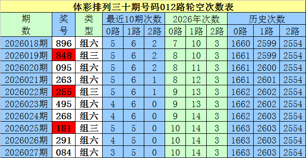 开奖回顾:排列三第2026027期奖号为:084,号码012路比为1:1:1。