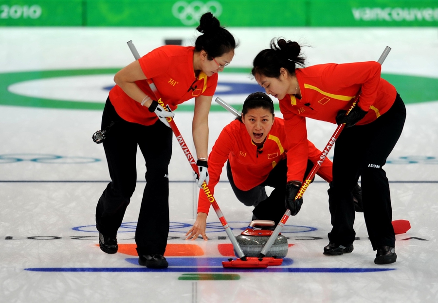 中国女子冰壶队在比赛中